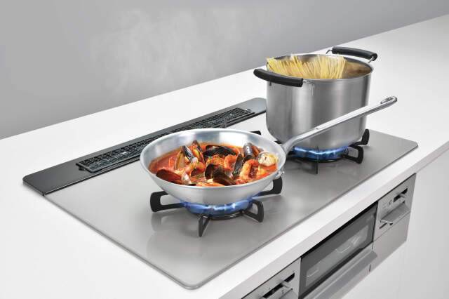 3つすべてのバーナーに安全センサーを搭載。鍋の焦げ付きも初期段階で自動消火。震度4の地震を感知すると、すべてのバーナーが自動消火します。 - 既設設置環境により、別途追加工事費が発生する場合がございます。